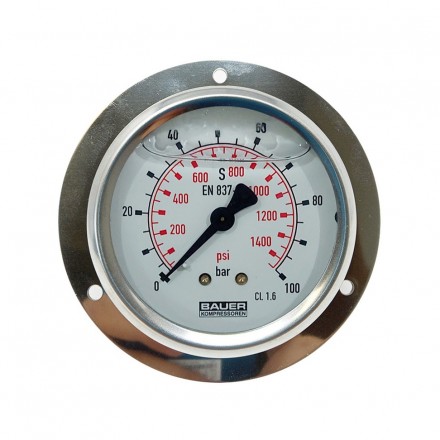 Manomètre 0-25 bar, 1/4G, diamètre 63mm - n1270 avec colerette colerrette